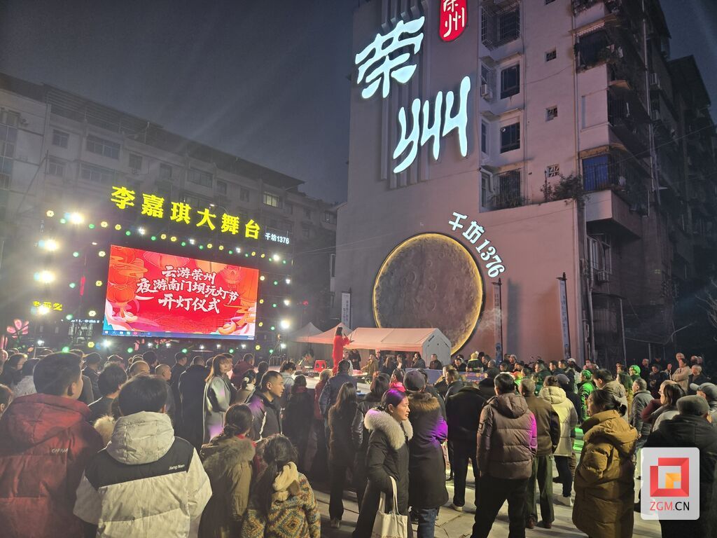 2月10日晚,荣县千坊1376 商业街流光溢彩,“云游荣州 ・ 夜游南门坝”首届南门坝玩灯节开灯仪式盛大举行。璀璨的灯光次第点亮古街河畔,大批市民游客齐聚现场打卡留念,在传统民俗与现代科技的交融中,沉浸式体验这场独具荣州特色的光影盛宴。