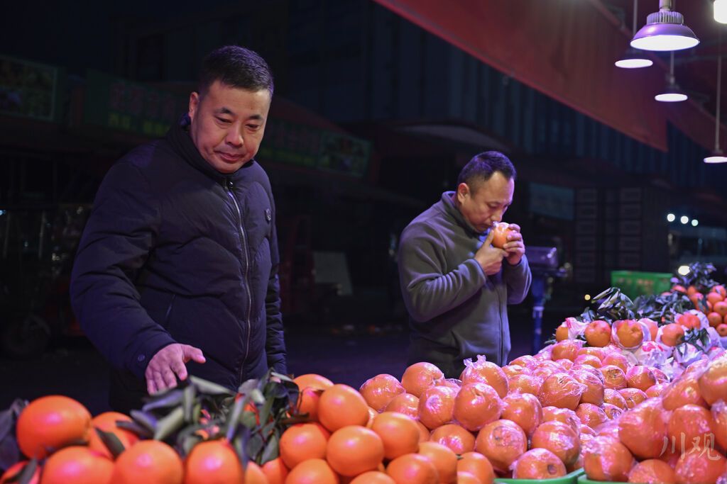 年饭年年吃,今年有不同。吃过饭的李红维拉着搭档刘红军,在一旁的集市上,摆摊卖起了水果,陕西的苹果、眉山的果冻橙,这些货运路上的原产地蔬果,是他们增收的新门道。