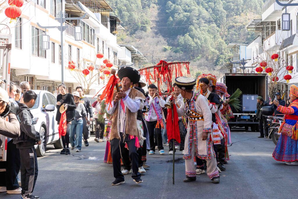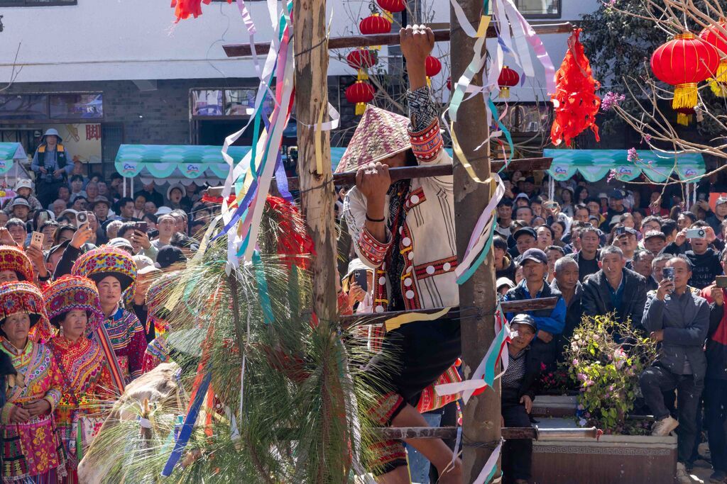 2月9日,农历腊月廿二下午,蓝天暖阳下的攀枝花市盐边县百年古镇永兴锣鼓喧天、鞭炮齐鸣。舞台上彩带飞扬,舞台下傈僳族同胞身着羊皮袄与五彩盛装,杀猪宰羊迎宾客,载歌载舞庆新年——连续举办12届的傈僳族阔时节,在这一天2000余名本地居民与市内外游客共聚同欢,以浓郁的民族风情拉开新春序幕。