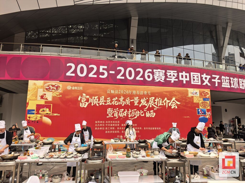 春节的脚步日渐临近,富顺街道上张灯结彩、年味渐浓。2月12日,富顺县文体中心人头攒动、鼓乐喧天,富顺县豆花高质量发展推介会暨首届村厨比“晒”活动在此火热启幕,一旁的2026年“非遗好物 国潮焕新——非遗年货购物月”摊位同样人气爆棚,各式好物琳琅满目,为市民游客献上一场兼具烟火气与文化味的新春盛宴。