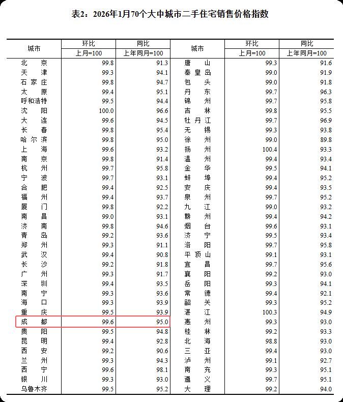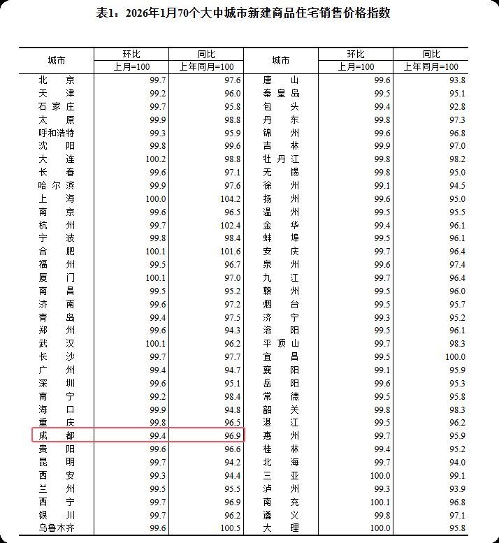 2月13日,国家统计局公布2026年1月份70个大中城市商品住宅销售价格变动情况——销售价格环比降幅总体收窄。