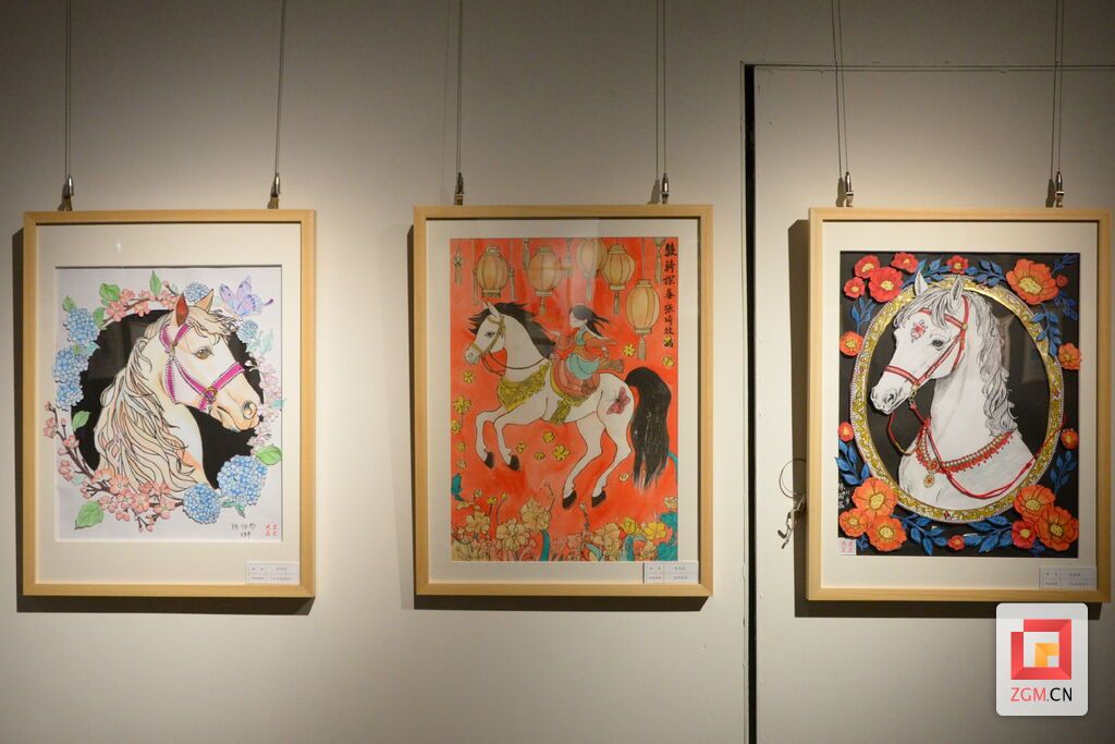展览现场,不少家长带着孩子前来观展,在一幅幅作品前驻足品读、交流感悟。从《花马银妆》的细腻装饰到《马年吉祥》的灵动意境,从《回家杀年猪》的民俗风情到《对抗》的运动活力,作品不仅传递了马年的吉祥寓意,更融入了对家乡发展、时代变迁的深情表达。多件特色作品让骏马形象栩栩如生、跃然纸上,将传统生肖文化与现代艺术手法完美融合,赢得了观众的一致好评。