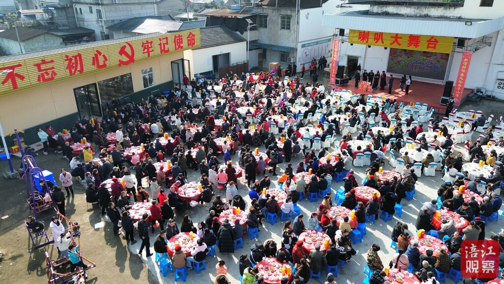 上午9时,“喇叭大舞台”已热闹非凡。红灯笼挂满枝头,彩旗在晨风中飘扬。王伯会一家找到了他们的座位——第48号桌。今天一共摆了90桌坝坝宴,近千名父老乡亲从四面八方赶来。