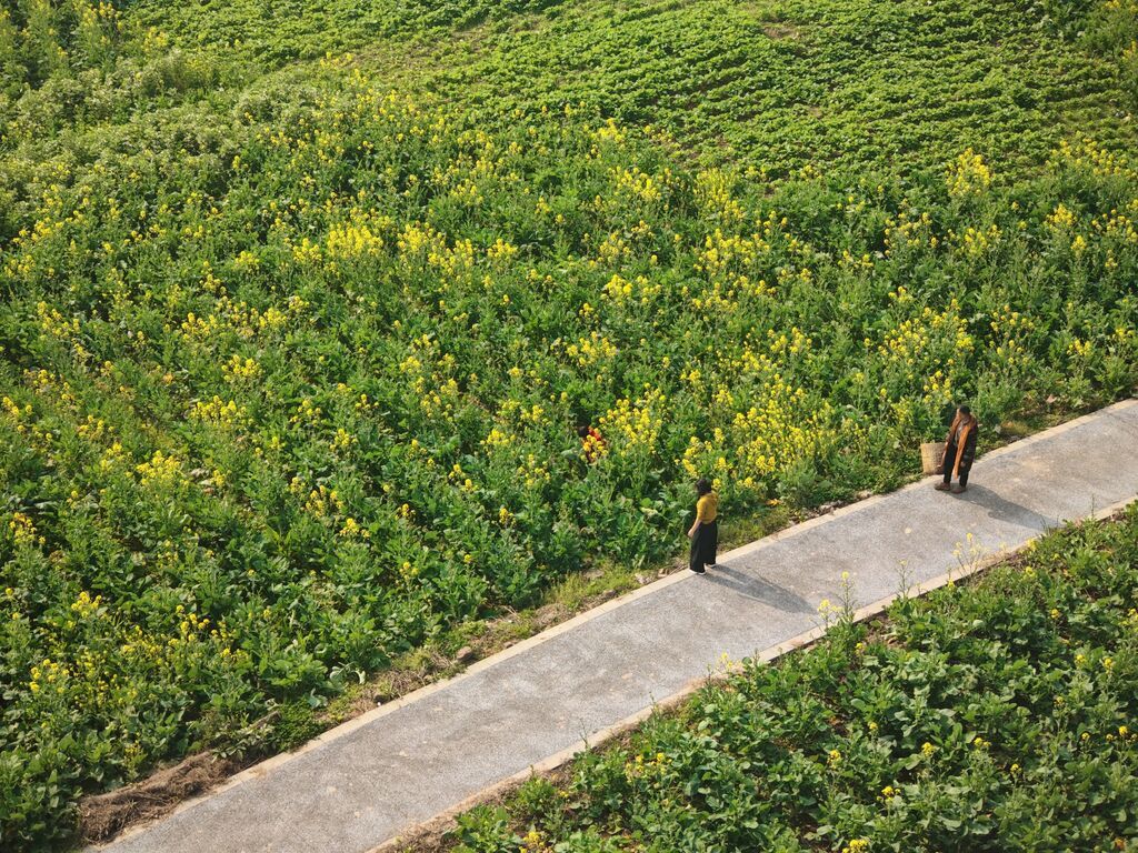 把视线从古镇延伸到田野。尽管距离油菜花全面盛放尚有时日,但花田的吸引力已经提前显现。桥上俯瞰,蝴蝶造型轮廓清晰可辨,步道间陆续迎来前来踏青、拍照的游客。有人驻足取景,有人悠然漫步,春日气息在田野间悄然流动。围绕3月初油菜花最佳观赏期,狮市镇已着手谋划富顺乡村音乐节。届时,蝴蝶造型花田与“和美富顺”图案将与音乐演出、打卡体验、农特产品展销等活动相结合,进一步延伸游客停留时间,拓展消费场景,为春日文旅热度蓄势加温。
