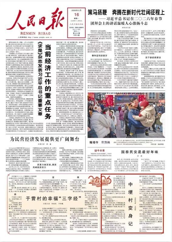 2026年2月16日,《人民日报》刊发中埂村报道《中梗村变身记》。