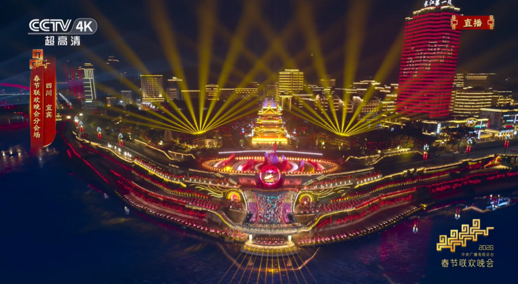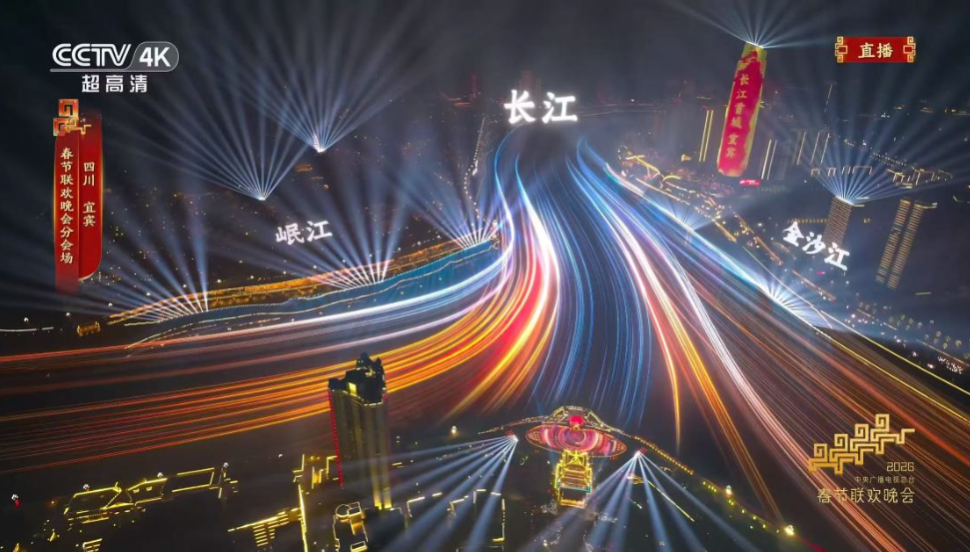 工业级无人机腾空而起,以一场名为“长江首城·骐骥驰骋”的光影大秀,拉开2026年总台春晚宜宾分会场迎新序幕”。机器狗、机器人、AI特效生成的熊猫梦幻联动,不仅是一场视觉盛宴,更是“四川智造”在“十四五”期间科技创新实力的一次精彩亮相。