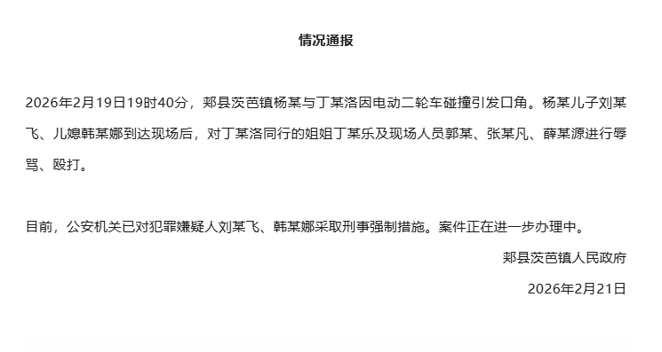 ·河南省平顶山市郏县茨芭镇人民政府针对网传“15岁女孩被当街暴打”的情况发布通报。