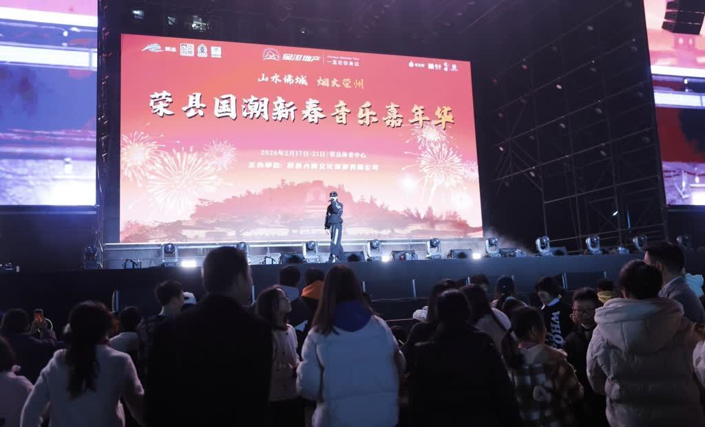 农历正月初三,变身欢乐海洋的荣县体育中心热度不减。今天是举办“山水佛城・烟火荣州”2026荣县新春嘉年华・文商体旅消费季系列活动之荣县国潮新春音乐嘉年华活动的第三天。