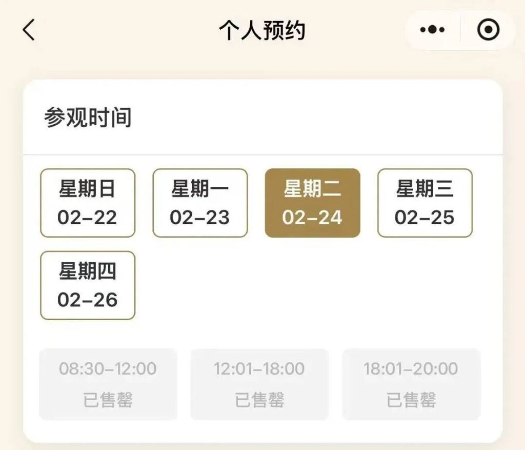 小布从三星堆博物馆公众号“门票预约”中看到,截至发稿时,三星堆博物馆2月22日、2月23日、2月24日门票均已售罄。