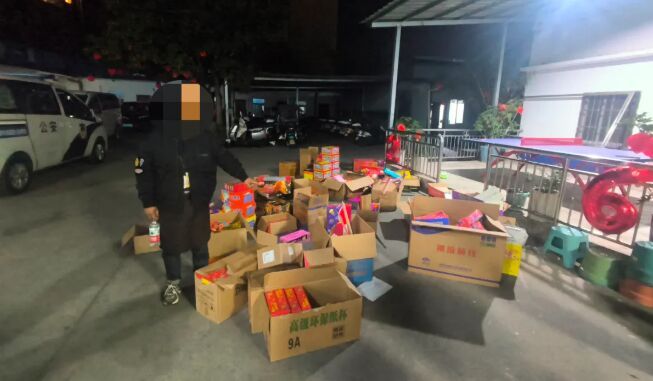 2026年2月17日晚,西昌市公安局西城派出所民警辅警在巡逻途中,发现石某某、王某某、李某某3人违规售卖烟花爆竹,民警立即上前处置,现场查获非法烟花爆竹共计20箱。