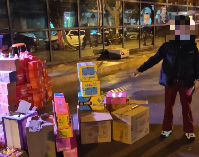 2026年2月18日晚,西昌市公安局西城派出所民警在辖区某路段巡逻时,发现一商户存在违规售卖烟花爆竹迹象。民警立即对该商户及储货场所开展全面检查。经查,商户负责人朱某某在未取得相关许可的情况下,违规储存各类烟花爆竹30箱,存在极大安全隐患,民警当场依法收缴全部违规烟花爆竹。