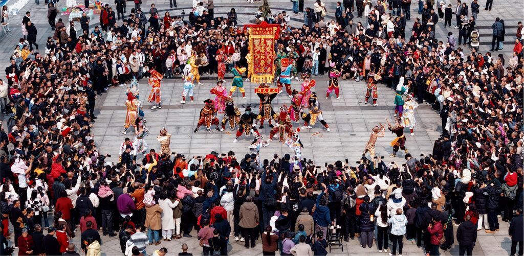 2月18日至20日,来自广东汕头、被誉为“中华战舞”的国家级非物质文化遗产——英歌舞,在丹棱进行了为期三天的巡游表演。这场岭南战舞与蜀地年味的邂逅,让总人口16.3万人的小城,这个春节涌入游客十余万人。