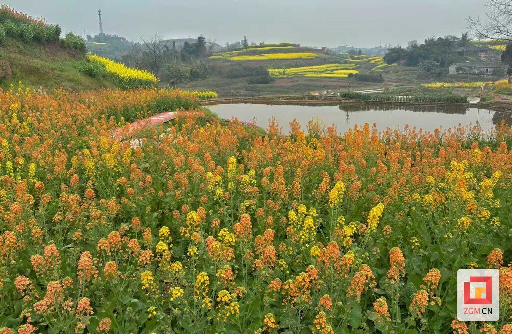 踏入龙万乡中和村,仿佛置身于一幅绚丽的春日画卷之中。五彩油菜花竞相绽放,黄色、橙色、紫色等各色花朵交织在一起,形成了一片五彩斑斓的花海。微风拂过,油菜花轻轻摇曳,散发出阵阵芬芳,引得蜜蜂、蝴蝶在花丛中翩翩起舞。游客们漫步在花田小径上,纷纷拿出手机拍照留念,记录下这如诗如画的美景。不少游客表示,如此大规模的五彩油菜花田十分罕见,仿佛是大自然打翻了调色盘,美得让人陶醉。