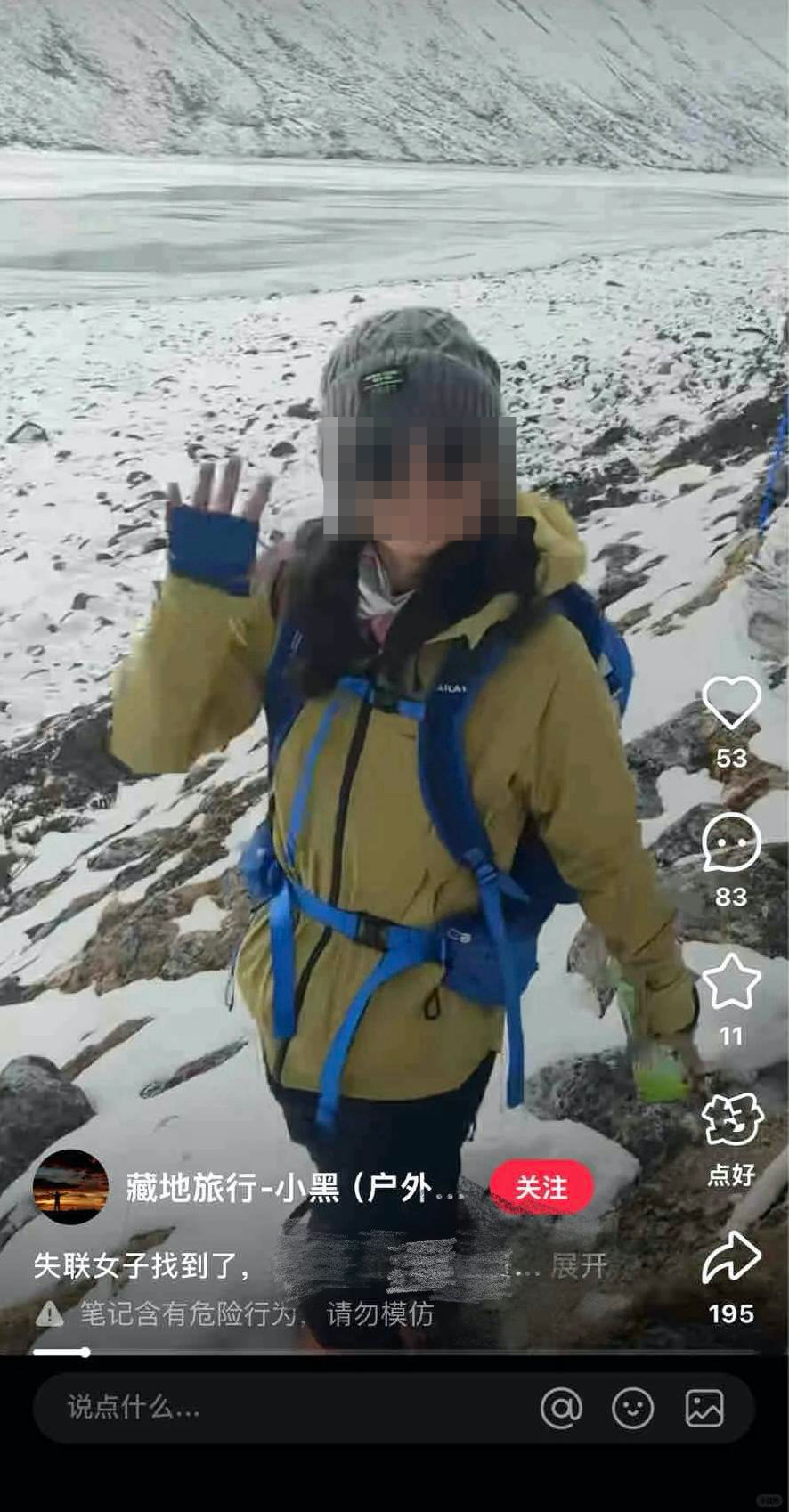 ·女生库拉岗日山峰徒步失联在牛棚被找到:牛粪盖在身上取暖,承担部分救援费用。