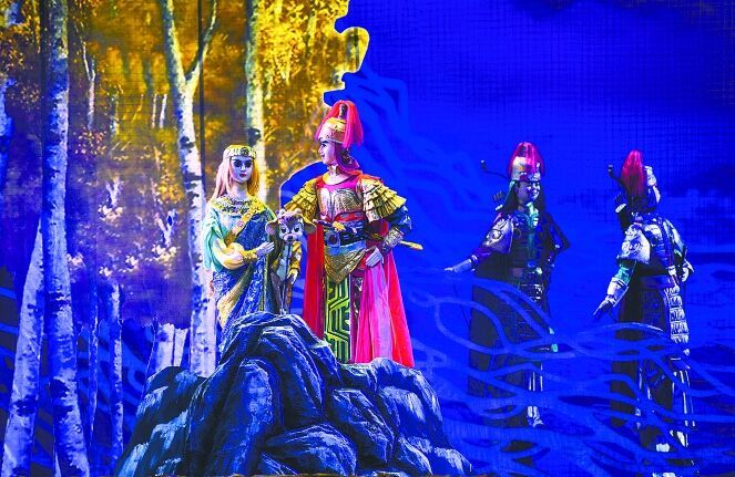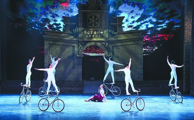 大型杂技情景剧《东方丝源》剧照。