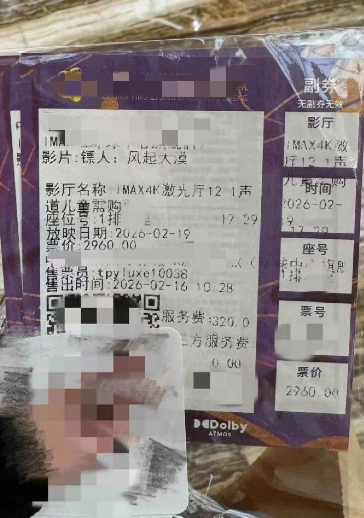 这还不是最高的价位。社交平台上网友反映,成都某影院的路演线下选座图中,票价从999元至3280元不等。一位通过个人票务渠道购票的观众告诉记者,他以3400元的价格买到了第一排靠边的座位,而他手中的纸质票根显示:票价2960元,服务费320元,合计3280元。
