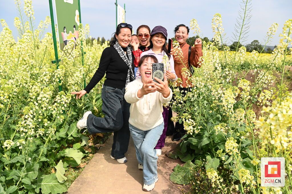 五彩油菜织就诗意画卷。“张幺妹,快过来,这里的油菜花好安逸,我们一起拍个合影!”“大家戴不戴红围巾呢?”淹没在油菜花海里的观光石板路上,一群姑娘们一边吆喝一边拍着照片和抖音,欢乐的笑脸,伴随着咔嚓咔嚓的快门声定格在这五彩的世界。