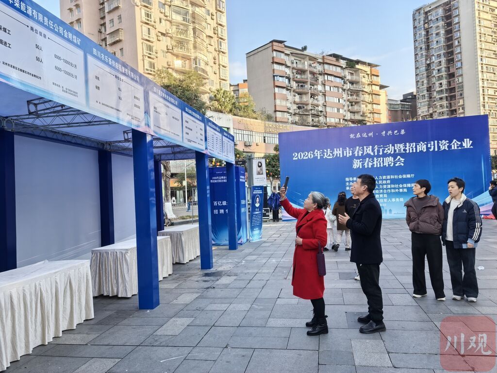 24日,达州罗浮广场,以“就在达州·才兴巴渠”为主题的2026年达州市春风行动暨招商引资企业新春招聘会正在搭建展架,计划25日启动,得知消息提前来了解岗位信息的居民络绎不绝。“儿子,高新区有家物流企业在招聘司机,你先打电话过去问下具体情况。”市民卢梅连忙拍照记录用工单位信息。据了解,该场招聘会将汇聚140余家企业,涵盖先进材料、电子信息、教育培训等多个领域。