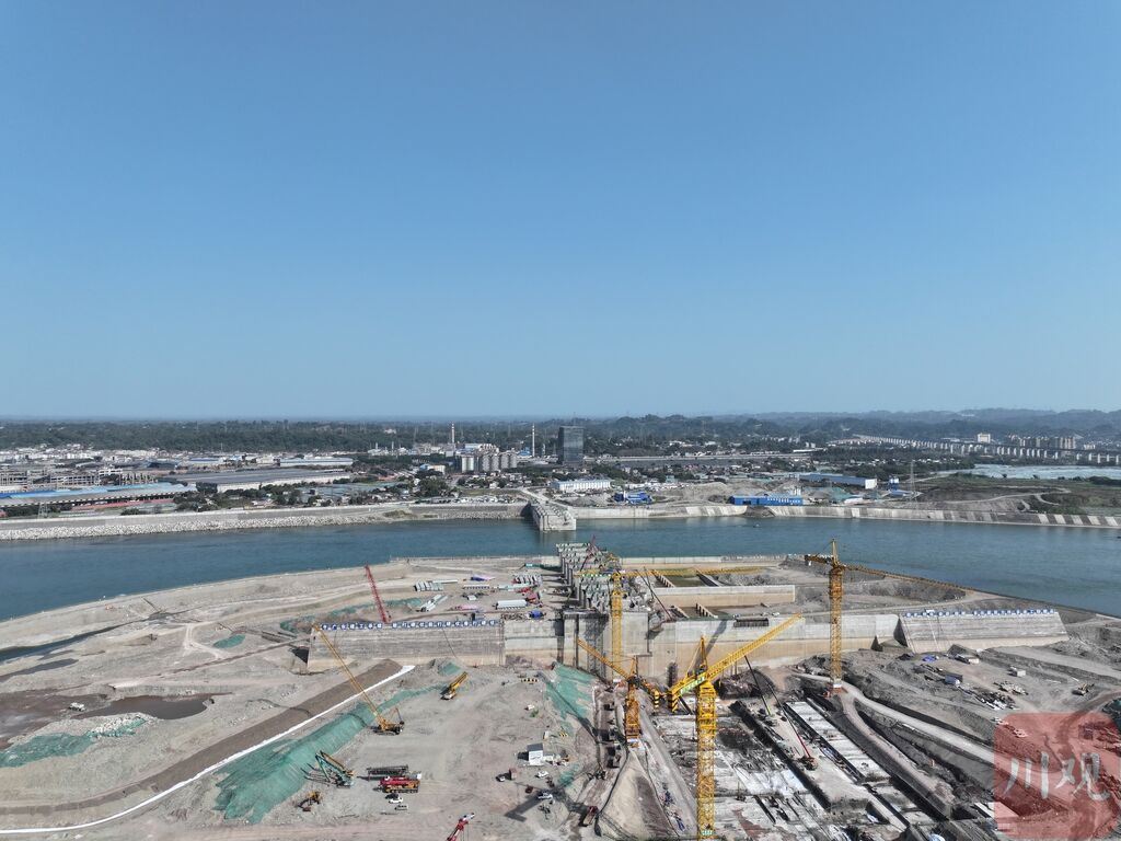 建设中的岷江老木孔航电枢纽工程项目。牛萍 摄