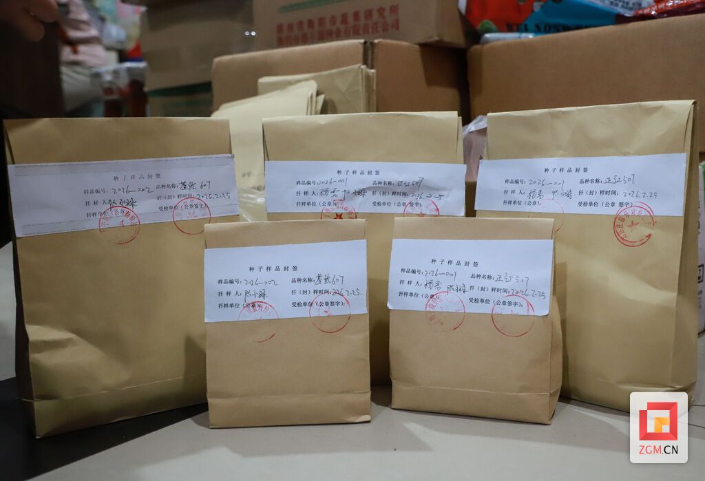 市场火热,质量安全弦更紧。就在记者采访时,荣县种子质量监督检验站的工作人员正穿梭于各摊位之前,开展春季种子市场抽检工作。“这批样种我们要带回检验站,对净度、水分、品种真实性、发芽率、品种纯度、转基因成分等多项指标进行检测,以确保进入市场流通的是达标种子,让农户买得放心、种得安心。”检验站工作人员一边封装样品,一边向记者介绍道。