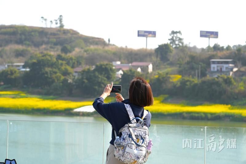 春风送暖,万物复苏。连日来,随着气温稳步回升,内江市中区七家滩湿地公园对岸的油菜花次第绽放,连片金黄铺展江岸,与碧水、湿地相映成趣,勾勒出甜城春日最亮眼的生态风景线,吸引市民游客纷至沓来。