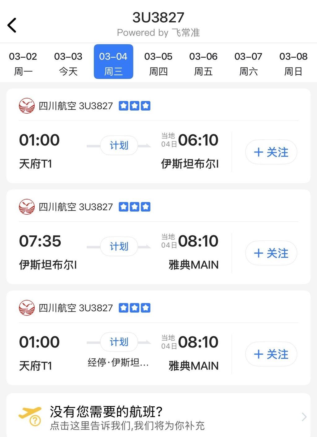 截至3月3日上午9时,飞常准显示,受中东局势影响,今明两天从成都直飞迪拜、开罗的航班均已提前取消。值得关注的是,3月4日及之后,成都—伊斯坦布尔—雅典、成都—多哈航线显示计划执飞,尚未取消。