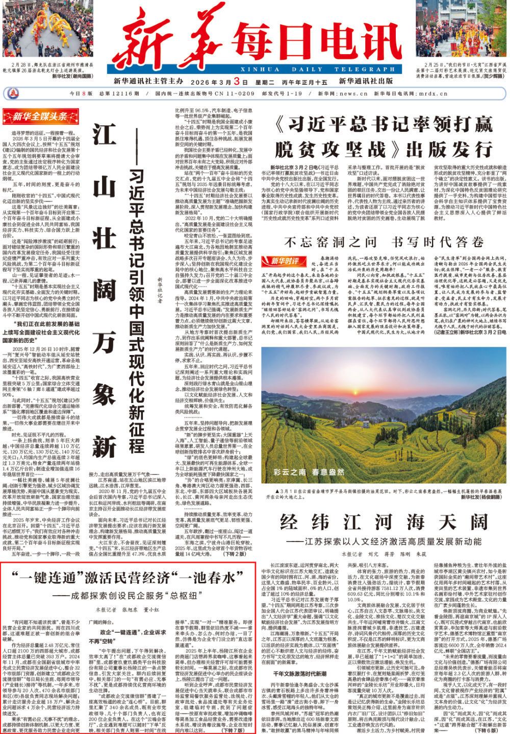 川开电气企业负责人曾在微信群里反映企业收款问题,成都市住建局和成都市轨道交通集团“一把手”一线办公,半天解决问题……高效服务激发民企发展活力,2025年,华鲲振宇等民企实现营收额数倍增长,成都民营企业新易盛订单实现5倍增长、成为本土首家市值达4000亿元的上市民企。
