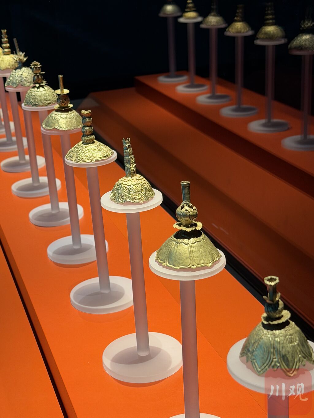 记者在现场注意到,展厅的展陈设计别具匠心,大量镜面材质的运用让文物陈列突破了传统的柜展模式,视觉效果极为震撼,富有沉浸感。