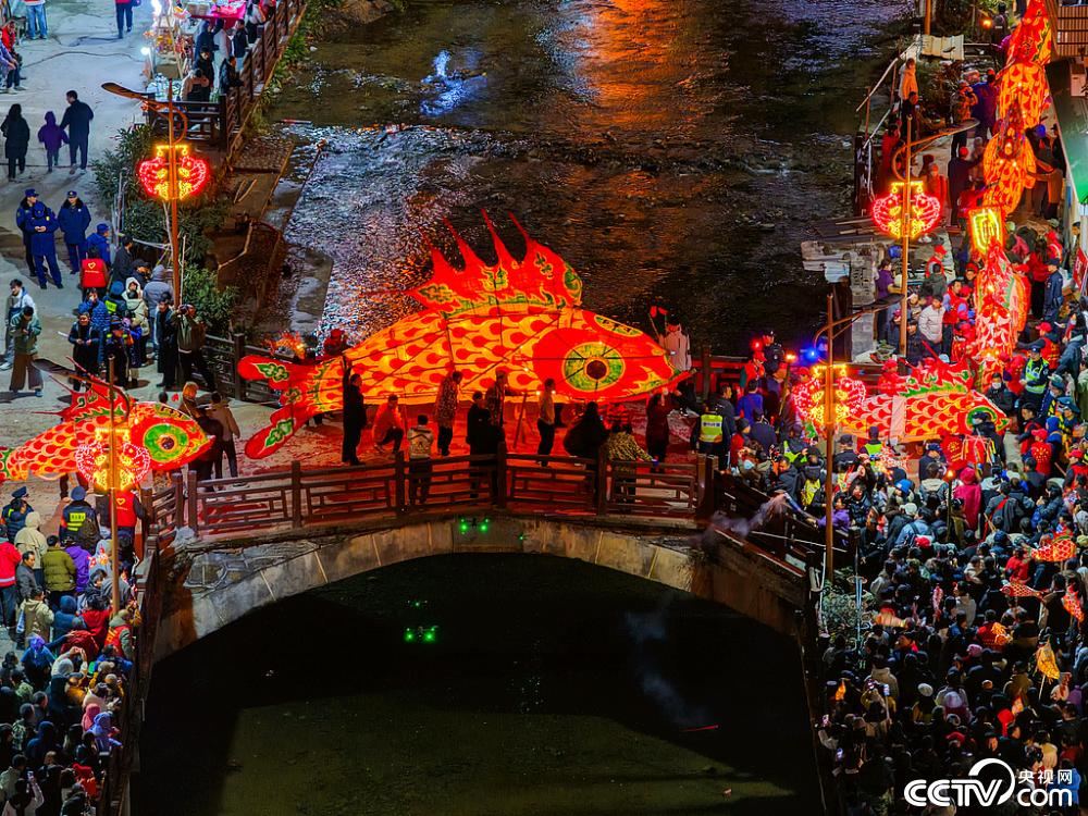 2026年3月2日,安徽黄山歙县汪满田村举行传统元宵灯会,十余条巨型鱼灯沿古村巡游,火树银花映照古巷,村民齐聚观灯祈福,千年民俗焕发光彩。