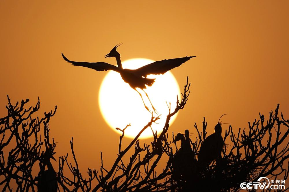 山西临汾霍州曲坡村,上百只苍鹭在此筑巢产卵,进入一年一度的繁殖季。