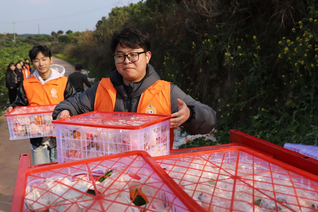 西部计划志愿者、返乡大学生、农机科普专家……从2022年成立至今,这个年轻的队伍从60余人发展到180余人,吸引了越来越多的新生力量加入。从青涩生疏的第一场直播,到线上带货助农增收超千万元,从单一的柑橘销售拓展到兔肉干、无骨鸡爪、小农机等全链条服务,这群年轻人用屏幕连接田地、用青春赋能乡村。