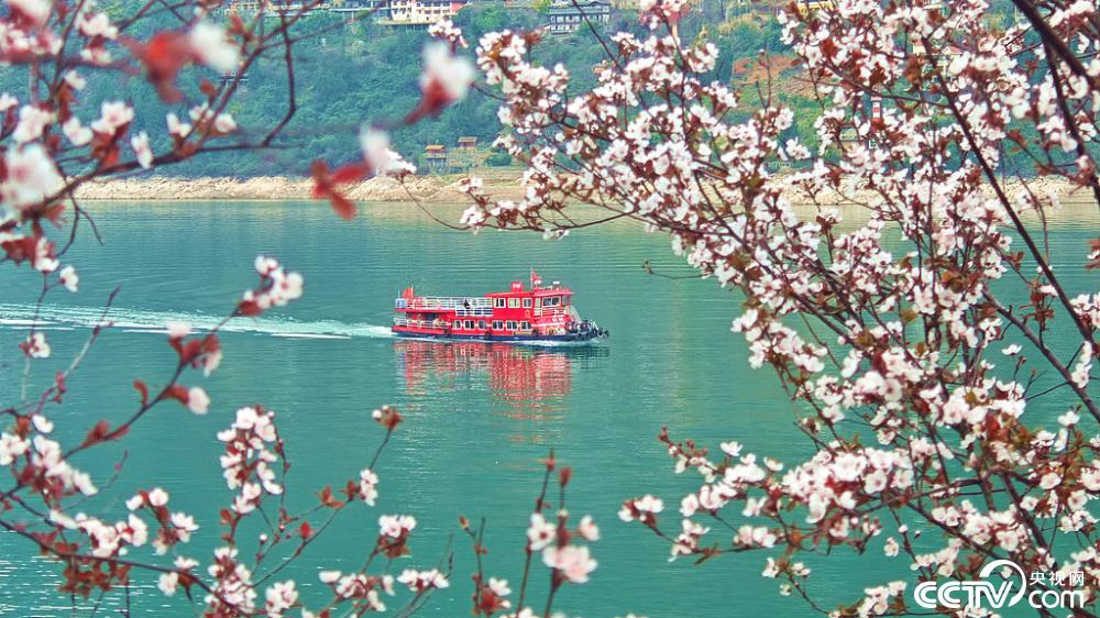 3月4日,重庆,初春时节,巫峡两岸繁花盛开,江水碧绿,游船穿行其间,构成一幅生动的巴渝春色图。