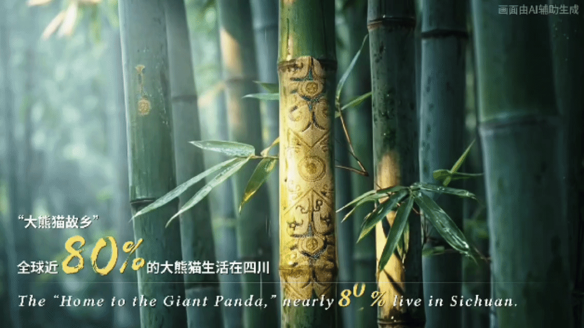 画卷随后延伸向辽阔山河,带我们跨越崇山峻岭,领略青幽竹海。这里生活着全球近八成的大熊猫,拥有九寨沟、黄龙、青城山—都江堰、峨眉山—乐山大佛等世界遗产的璀璨集群。48.6万平方公里之上,“千河之省”水韵天成,年接待游客量稳居全国前列——大自然以其最慷慨的笔触,赋予了四川无可比拟的生态画卷。