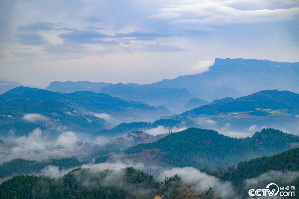 3月6日,重庆酉阳,薄雾笼罩下的渝湘高速复线与蜿蜒山道,金黄的油菜花田点缀其间,构成一幅山乡晨景。