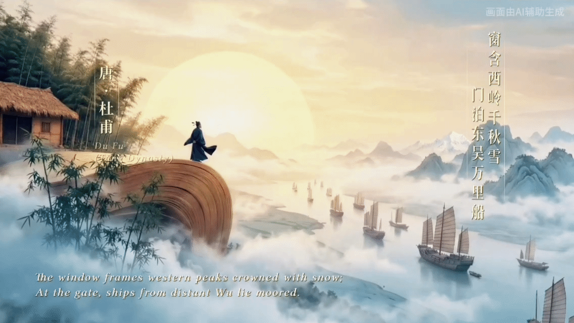 短片从深厚的历史底蕴起笔。蚕丛教民养蚕的远古传说、三千年前蜀锦初成体系的精工技艺、两千余年前成都设锦官城的历史荣光、蜀锦随丝绸之路声达域外的文明回响一一铺陈。这根贯穿历史的金线,“绘”出太阳神鸟、三星堆黄金面具的文化光芒,“绘”出文翁兴学、草堂春雨、东坡故里的诗书长河。“自古诗人例到蜀,好将新句贮行囊”,千年文脉在此奔流不息。