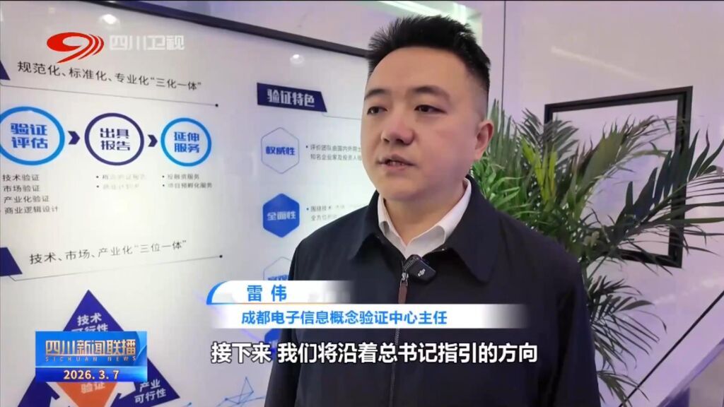 成都电子信息概念验证中心主任 雷伟:接下来,我们将沿着总书记指引的方向,深耕电子信息领域,探索早期成果发现+商业逻辑设计+应用场景供给的概念验证模式,破解“技术是否可行”的问题,打通成果转化的“最初一公里”。