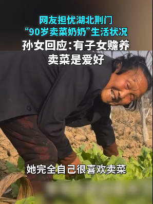 ·网友担忧湖北荆门“90岁卖菜奶奶”生活状况,孙女回应:有子女赡养,卖菜是爱好。