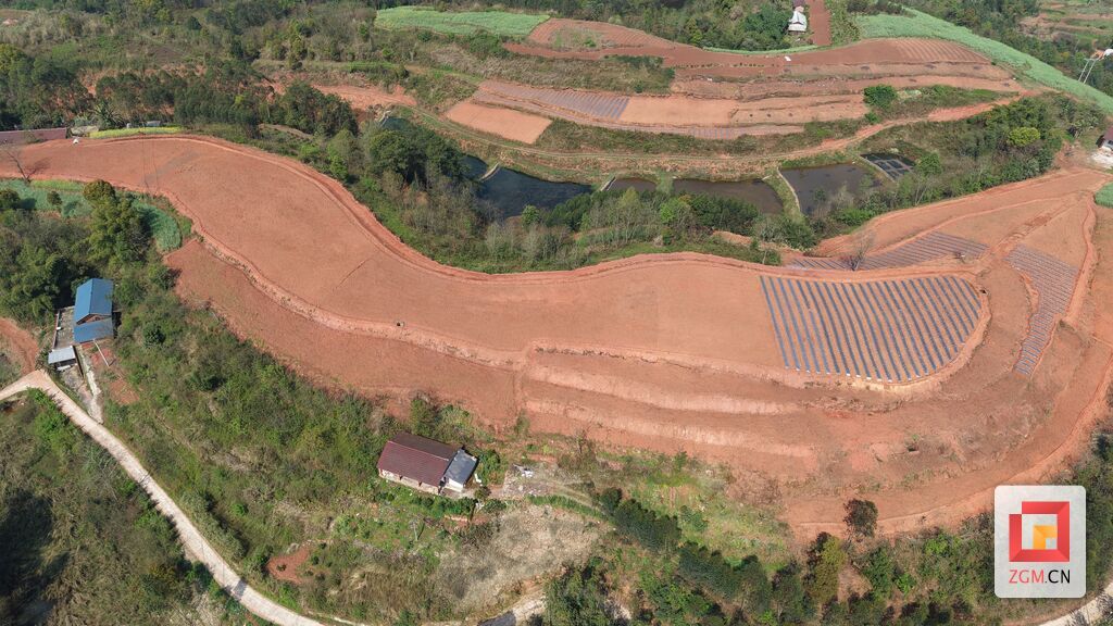 山坡上,村民们有的驾驶农机翻土,有的弯腰播种玉米、花生,有的忙着移栽辣椒苗,到处一派热火朝天的春耕景象。小山丘下的田埂边,两台大型挖掘机正挥舞着铁臂,平整田埂、疏通沟渠。引擎的轰鸣声不时惊起一群白鹭,它们扑棱着翅膀掠过水面,在波光粼粼的水田上划出一道道优美的弧线。已经整理好的水田蓄满了春水,在阳光的照耀下闪烁着碎金般的光芒。这些镜头,绘就出从“零碎薄瘠”到“连片沃野”的土地“变形”画卷。