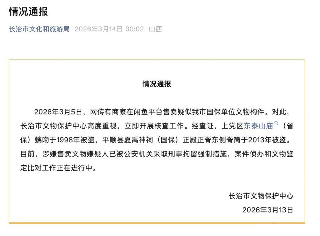 ·国保文物在二手平台公开售卖标价36666元?山西长治通报。