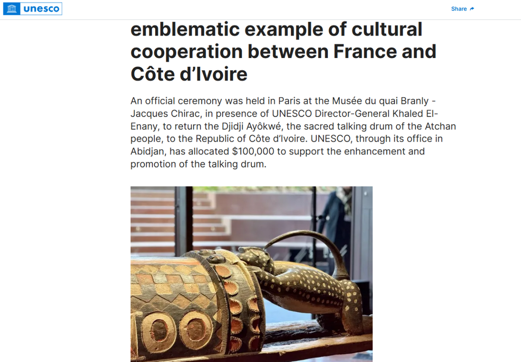 ·被法国掠夺的“会说话的鼓”漂泊110载,回归科特迪瓦。