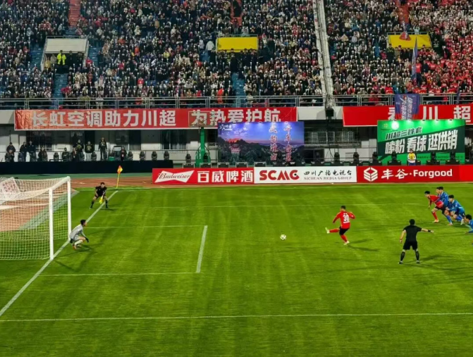 下半场第58分钟,比赛出现转折,绵阳队获得点球机会,30号球员周翥主罚一蹴而就,势大力沉的射门直入网窝,帮助绵阳队取得1:0领先。这粒进球不仅是川超决赛阶段的首粒点球破门,也是绵阳队在决赛阶段的首例进球,更是南河体育中心承办川超赛事以来的首粒进球,而周翥也凭借这粒进球,将个人总进球数提升至6颗。