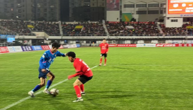 比赛伊始,双方便展开激烈攻防。绵阳队依托边路配合频频向乐山队大门发起猛攻;身着蓝色球服的乐山队则依靠灵活的团队配合,一次次挡下对手的“刀锋”,皮球在两队队员脚下来回交替,双方势均力敌、你来我往,多次威胁对方球门却均未能破门。上半场结束,比分定格为0:0,一场胶着的较量在中场休息后继续上演。