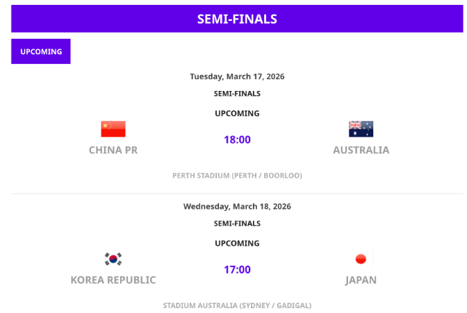 ·女足亚洲杯半决赛对阵出炉:日韩相遇,中国女足对阵东道主澳大利亚。