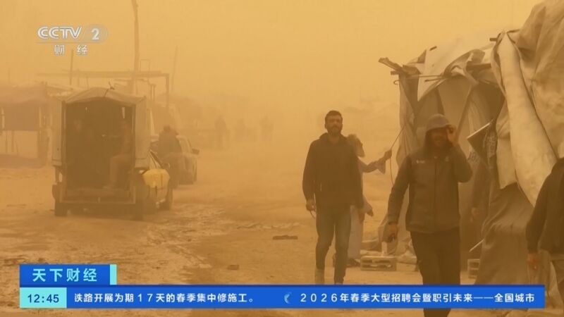 ·加沙地带中部和南部遭沙尘暴袭击,大量帐篷被毁。