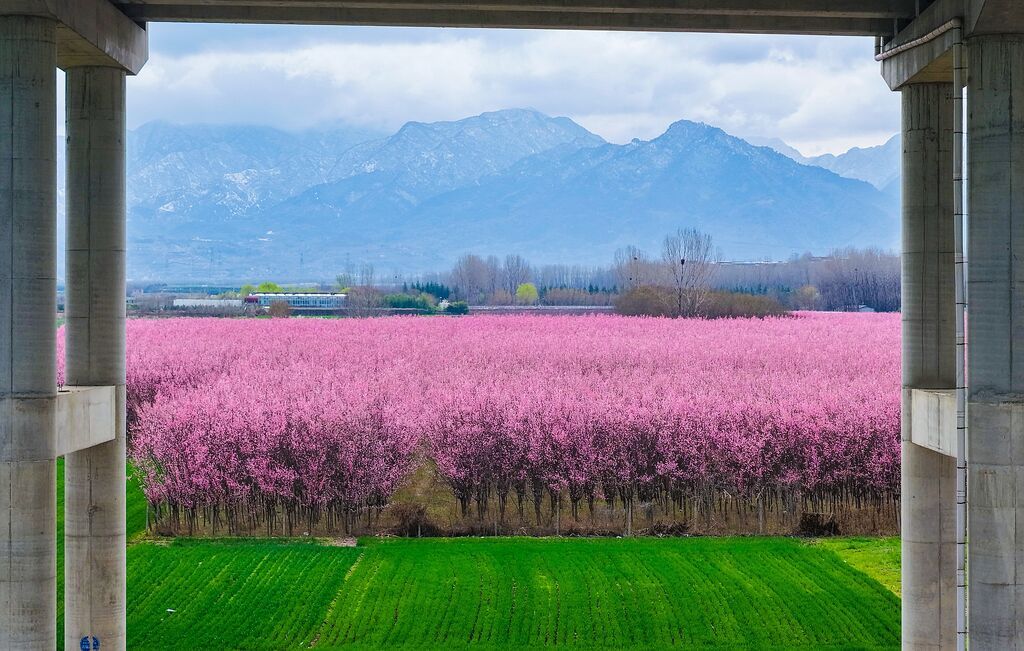 3月15日,陕西西安长安区库峪河边,盛开的梅花与雪后秦岭相映成趣,构成一幅美丽画卷。