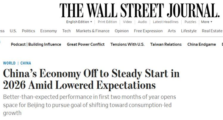 多家外媒认为,中国经济在2026年实现了有力开局,工业生产、消费和投资表现均超预期走强,这一开局有助于中国在保持增长韧性的同时,继续推动经济向消费驱动型增长转变。