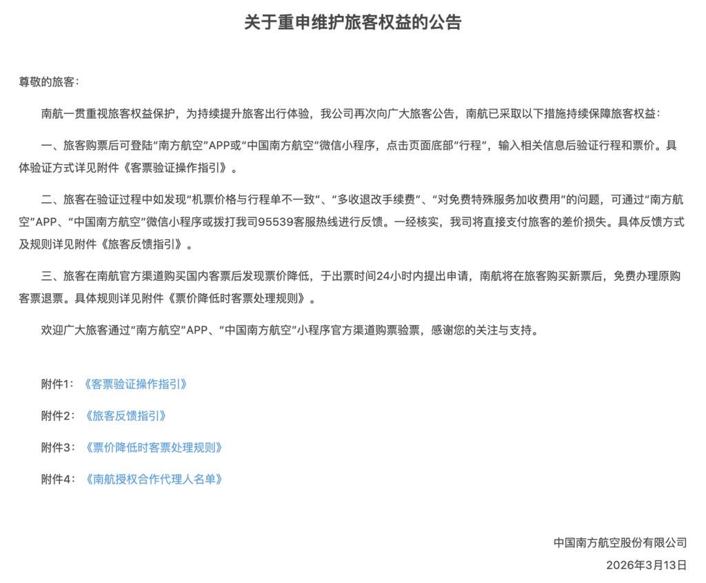 验证过程中如发现“机票价格与行程单不一致”、“多收退改手续费”、“对免费特殊服务加收费用”的问题,可通过“南方航空”App、“中国南方航空”微信小程序或拨打95539客服热线进行反馈。一经核实,南航将直接支付旅客的差价损失。