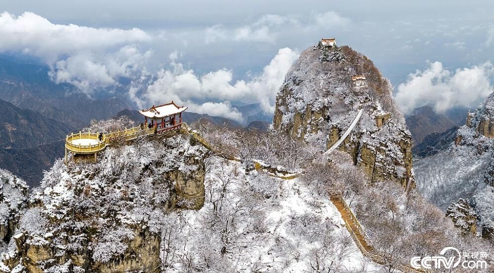 春季时节,山西省永济市五老峰景区迎来降雪。景区内层叠的山峰、皑皑的白雪与翻腾云海相互映衬,组成了一幅春季雪景图,美不胜收。