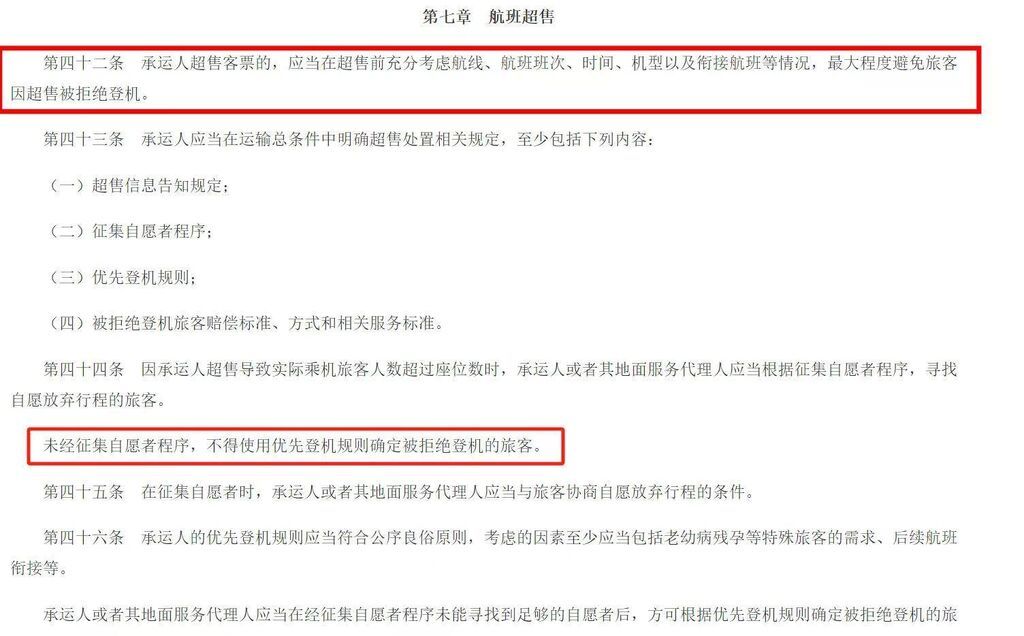 此外,规定还明确,未经征集自愿者程序,不得使用优先登机规则确定被拒绝登机的旅客。多位专家认为,不少因超售引发的纠纷侵害了消费者的知情权、选择权和公平交易权。