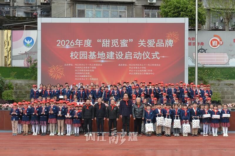 春风送暖,关爱同行。3月18日上午,2026年度“甜觅蜜”关爱品牌校园基地建设启动仪式在内江市第五小学举行,标志着内江新一轮校园关爱服务工作正式拉开帷幕。